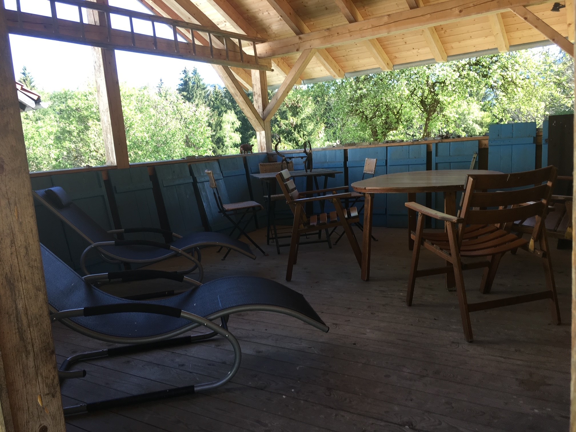 Großzügiger Garten mit Liegestühlen, Freisitz mit Grill und Grillkohle, Kühlschrank im Schuppen direkt neben dem Freisitz, Naturteiche und Magerwiese — zur freien Nutzung.